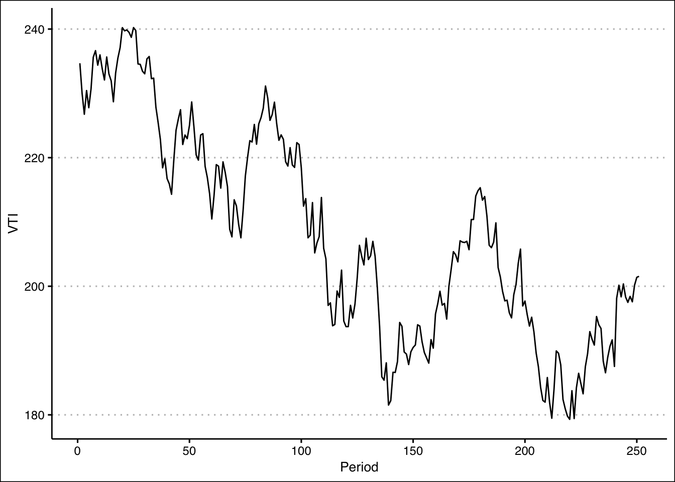 geom_line(aes(y=VTI, x=seq(1,length(VTI)))) + theme_clean() +
