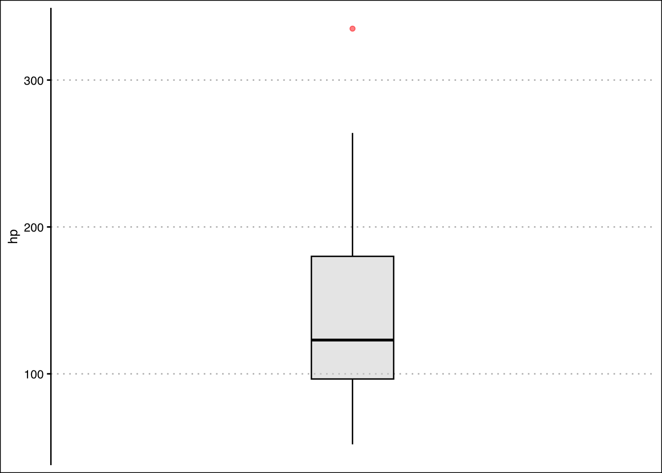 - Construct a boxplot for the hp variable. Write a command in R that retrieves the outlier. Which car is the outlier?