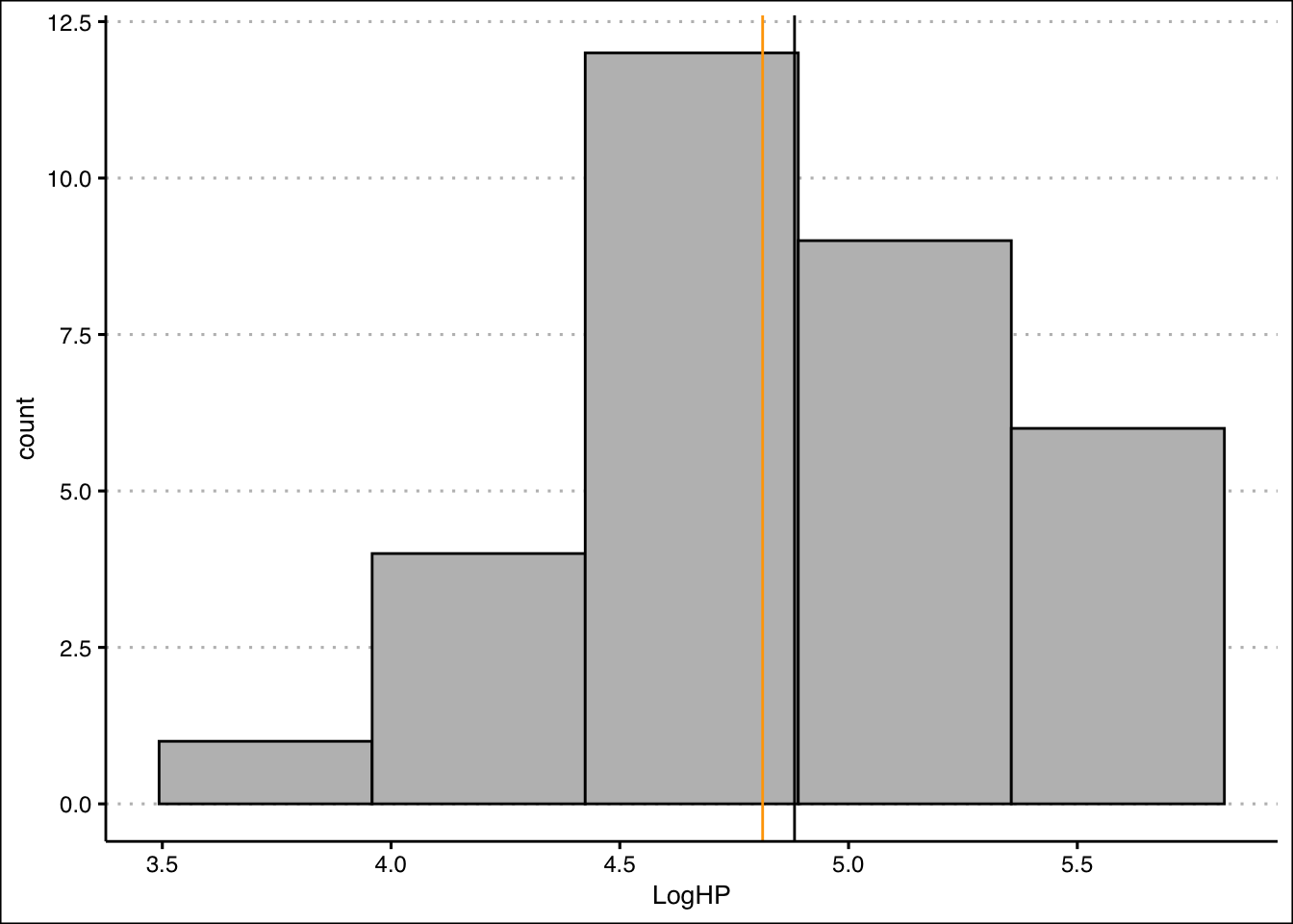 geom_vline(xintercept = mean(LogHP), col="black")+